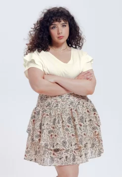 À Manches Volantées – T-Shirt Basique – Ecru