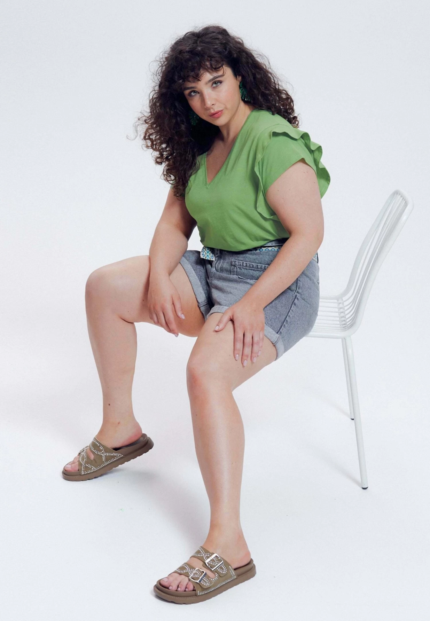 À Manches Volantées – T-Shirt Basique – Turquoise