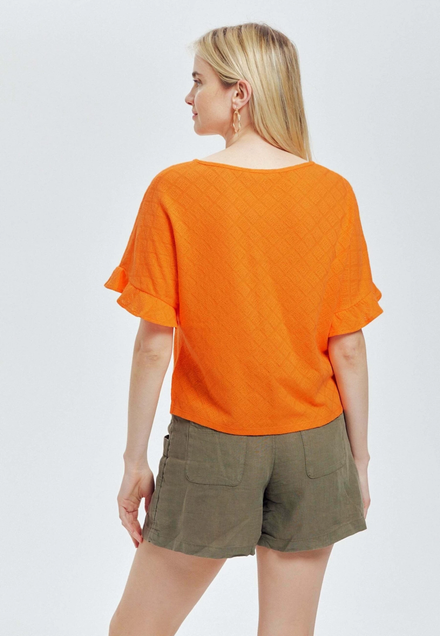 Ajouré Effet Pointelle – T-Shirt Imprimé – Orange