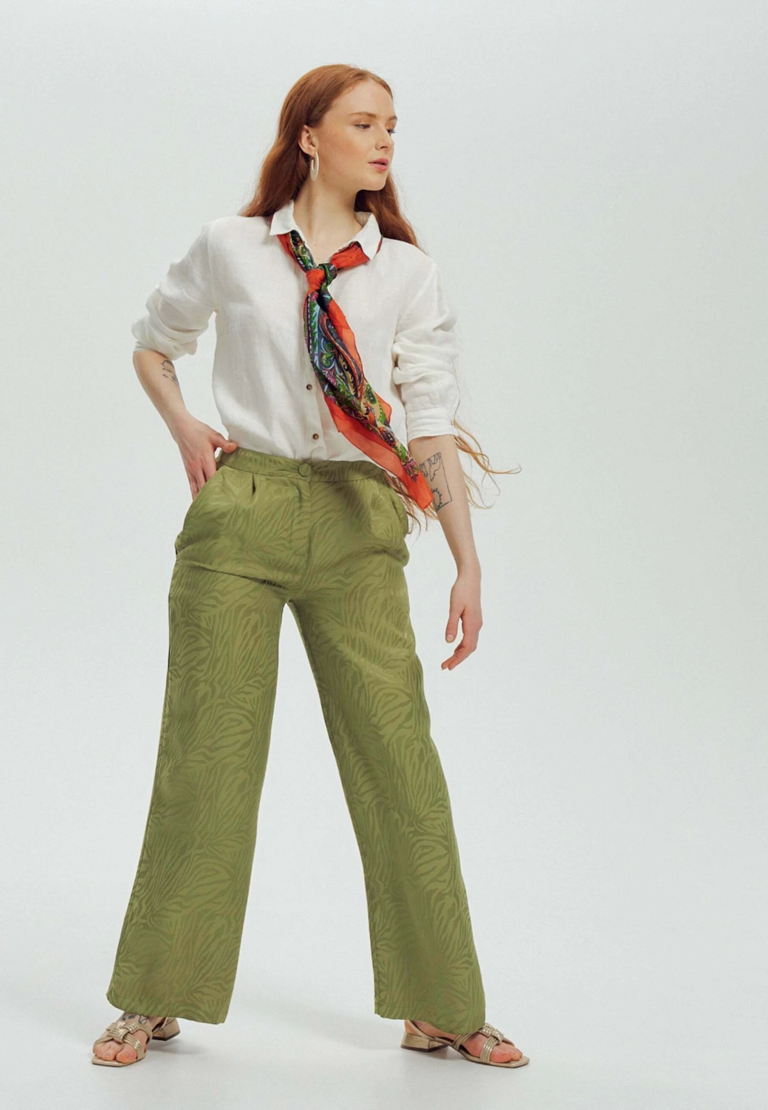 Large Zébré – Pantalon Classique – Vert Olive